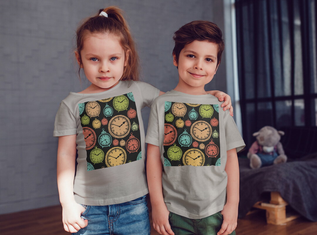 選べる20カラー tシャツ キッズ 半袖 黒地 ブラック デザイン 90 100 110 120 130 140 150 160 Tシャツ ティーシャツ T shirt 009701 時計 アンティーク