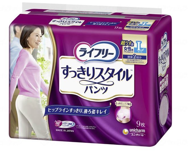 サイズ Mサイズ・・・10枚入りウエスト60〜85cm、ヒップ80〜95cmLサイズ・・・9枚入りウエスト75〜100cm、ヒップ90〜105cm吸収回数の目安 排尿2回分基本情報 メーカー ユニ・チャームMサイズ 10枚/袋 6袋/ケースLサイズ 9枚/袋 6袋/ケースユニ・チャーム T ライフリーすっきりスタイルパンツMサイズ(10枚)Lサイズ(9枚) 女性用 53170 1万円以上の御購入で送料無料!! [介護 ケア 介護用品 オムツ] 3つの工夫で、すっきり自然なシルエットへ [1] すっきりシェイプ構造 [2] 足回りすっきり形状 [3] すっきりフィット吸収体 2
