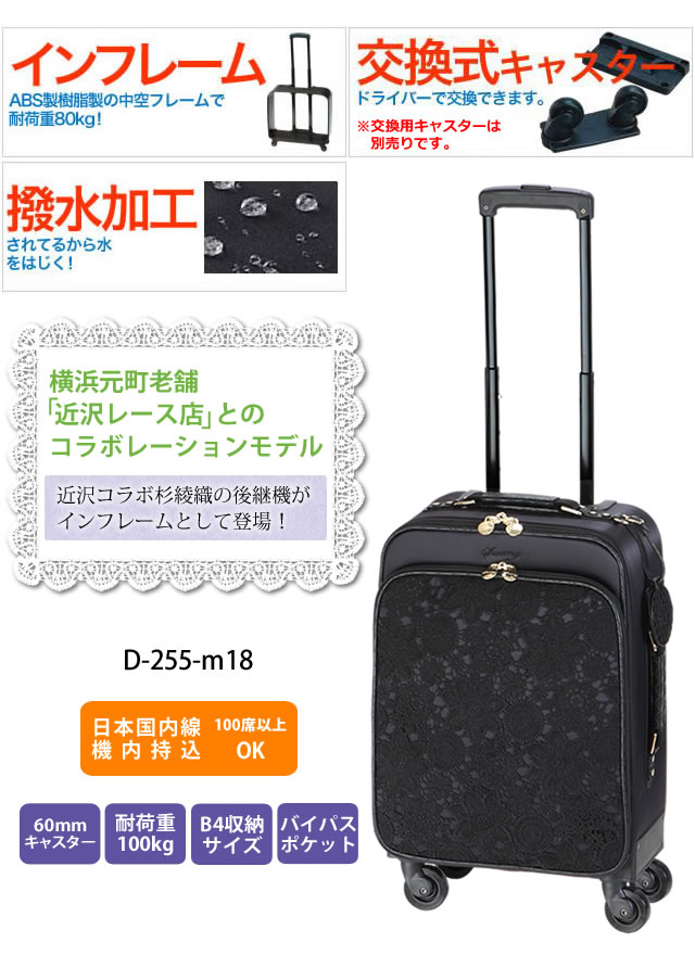 【旅行グッズ10点オマケ】SWANY(スワニー) 近沢レース店コラボ46cm Lサイズ T-256-l 4輪キャリーバッグ 黒25690 機内持ち込み(su1a133)[C]【選べる旅行用品10点セットプレゼント】