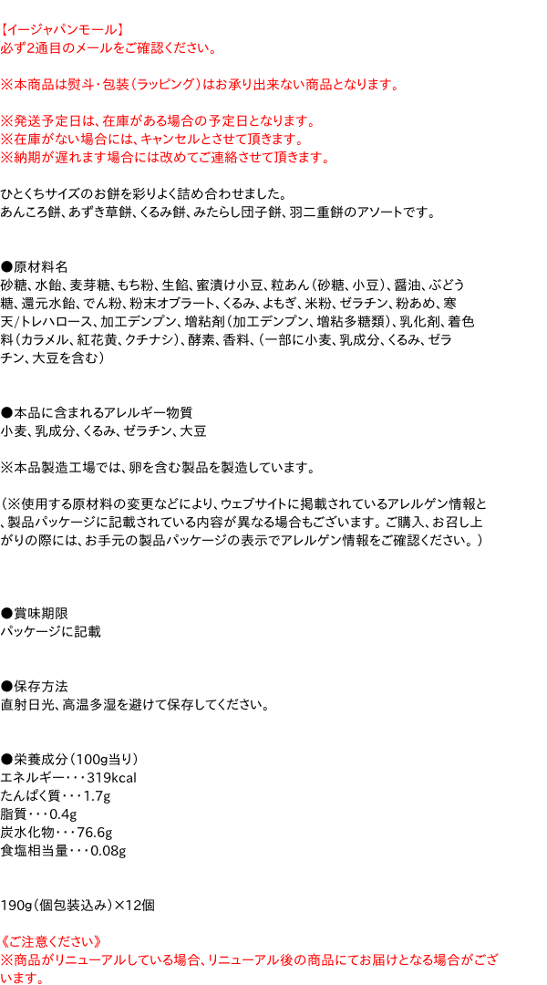 [関連キーワード:お菓子 半生菓子 和菓子 だんごもち あんころもち くるみもち 草餅 アソート]【イージャパンショッピングモール】内のみのお買い物は、送料一律でどれだけ買っても同梱する事が出来ます。